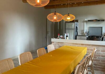 De benedenverdieping bestaat uit een grote royale keuken met een 8-persoons eettafel.