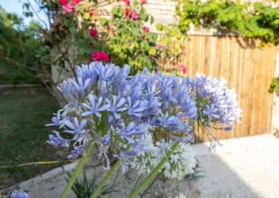 Rondom het huis is een tuin aangelegd met gazons en borders met o.a. rozen, lavendel en rozemarijn.
